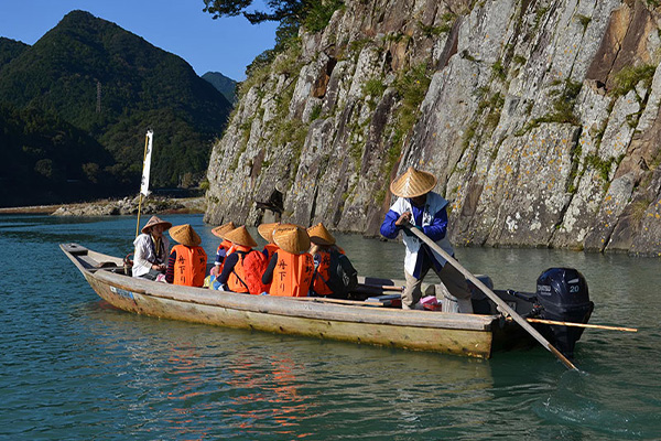 特別安排搭乘「水上熊野之路」輕舟,是過去皇室從熊野本宮大社前往熊野速玉大社時所走的參拜之路。